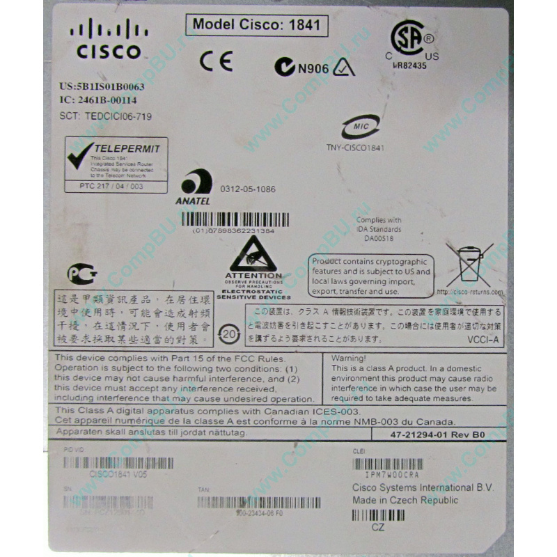 БУ модульный роутер Cisco 1841 (47-21294-01, 2461B-00114, IPM7W00CRA; металлический корпус) с дополнительной флеш-памятью Compact Flash на 4 Gb.